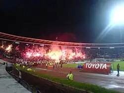 The Eternal derby (Serbian: Вечити дерби / Večiti derbi), also called the Derby of Southeast Europe[1] and Belgrade derby (Serbian: Београдски дерби / Beogradski derbi), is the local derby in Belgrade, capital of Serbia, between fierce city rivals Red Star Belgrade and Partizan Belgrade, two of the biggest and most popular clubs in Serbia, although the derby has caused division throughout the whole of Serbia. It has been described as "one of European football's most bitter rivalries".[2]