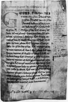 The first page of the twelfth-century manuscript of Æthelberht's law code