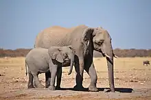 | African bush elephant | common | Etosha's elephants belong to the group of elephants in northwestern Namibia and southern Angola. They are the tallest elephants in Africa, but mineral deficiencies mean that they have very short tusks.[14] |