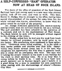 A newspaper article about a self-described "ham" telegraph operator, 1909