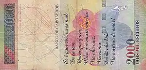 The poem "Morna de Aguada" was featured in a Cape Verdean escudo note in 1999. Between 2007 and 2014, he was featured on a Cape Verdean 2000 escudo note, on the reverse "Morna de Aguada" continued to be featured. At the right part is a flower of his native island.