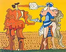 Although springing from the depths of his subconscious like that of all the surrealists, Granell's work is influenced by the places where he lived, particularly the exuberance of the Caribbean and the blend of Spanish and native cultures.[8] Surrealism recognises no social function of art other than that of liberating the individual and society from the repression of reason, allowing the creator to express his instincts and dreams. In 1959, André Breton organized an exhibit called The Homage to Surrealism Exhibition to celebrate the Fortieth Anniversary of Surrealism which exhibited works by Salvador Dalí, Joan Miró, Enrique Tábara and Eugenio Granell.