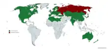 To become a member of the bank, a country needs to fit the EBRD's Articles of Agreement. These Articles stipulate that a country can only become a Member State if it is a state in Europe or a non-European member of the IMF. Institutions like the European Union and the EIB also participate in the bank operations. Since its foundation the EBRD has almost doubled in membership size.[9] The latest accessions to the bank are countries located in Africa.