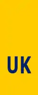 - United Kingdom: yellow plates at the rear and white at the front and can be flat plastic or metal. Since 2021, the European symbol of a circle of stars must not be displayed with any of the following identifying letters (due to Brexit). Only registration plates with the distinguishing code "UK" (coloured black or blue) on its own, or together with the Union Flag (orientated in landscape) are valid in other countries party to the Vienna Convention on Road Traffic.[9]