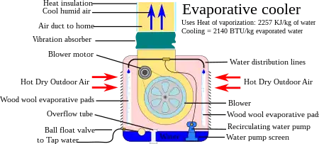 - ↑ "Evaporative Cooling Design Guidelines Manual for New Mexico Schools and Commercial Buildings" (PDF). December 2002. pp. 25–27. Retrieved 12 September 2015.