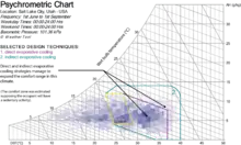 The figure showing the Salt Lake City weather data represents the typical summer climate (June to September). The colored lines illustrate the potential of direct and indirect evaporative cooling strategies to expand the comfort range in summer time. It is mainly explained by the combination of a higher air speed on one hand and elevated indoor humidity when the region permits the direct evaporative cooling strategy on the other hand. Evaporative cooling strategies that involve the humidification of the air should be implemented in dry condition where the increase in moisture content stays below recommendations for occupant's comfort and indoor air quality. Passive cooling towers lack the control that traditional HVAC systems offer to occupants. However, the additional air movement provided into the space can improve occupant comfort.