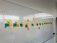Event storming is a workshop-based method to quickly find out what is happening in the domain of a software program.[1][2] Compared to other methods it is extremely lightweight and intentionally requires no support by a computer. The result is expressed in sticky notes on a wide wall.
