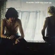 "Every You Every Me" is a song by British alternative rock band Placebo, released as the third single from their second album, Without You I'm Nothing, on 25 January 1999. It was released as a 2-CD set and on cassette, but promotional copies on 12-inch vinyl exist. The single managed to chart at number 46 in Australia, number 99 in Germany, and number 11 on the UK Singles Chart. There are two versions of the video, both filmed live at London's Brixton Academy; one includes clips from the film Cruel Intentions.[2][3] An alternative video taking place at a casino was filmed in November 1998 but would not be released until 18 years later as part of the promotion for A Place for Us to Dream.[4]