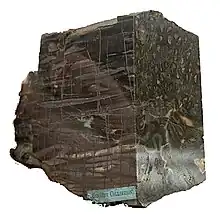 Archaeopteris forests were soon supplemented by arborescent lycopods, in the form of Lepidodendrales, which exceeded 50m in height and 2m across at the base. These arborescent lycopods rose to dominate Late Devonian and Carboniferous forests that gave rise to coal deposits.[89] Lepidodendrales differ from modern trees in exhibiting determinate growth: after building up a reserve of nutrients at a lower height, the plants would "bolt" as a single trunk to a genetically determined height, branch at that level, spread their spores and die.[90] They consisted of "cheap" wood to allow their rapid growth, with at least half of their stems comprising a pith-filled cavity.[1] Their wood was also generated by a unifacial vascular cambium – it did not produce new phloem, meaning that the trunks could not grow wider over time.