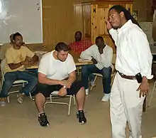 Alvin Willis, an intake counsel, talks to new clients of the program.
