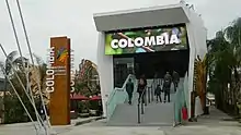 ![]() Colombia pavilion | Theme Concept: Mauricio Cárdenas, Studio Cárdenas; Architecture Concept: Manuel Villa Arquitectos; Architectural Design: Mauricio Cárdenas, Studio Cárdenas[22] | The Colombia Pavilion theme was "Naturally Sustainable", a concept that was experienced throughout the exhibition of the five thermal floors the country has: hot, temperate, cold, moorland and perennial snow. The possibility of having a stable temperature during 365 days, allows the country to be a constant food producer, a breadbasket of the world. The archietecture of the pavilion was inspired in Colombia's geography having 4 modules of different height and extension.[23] | Colombia Pavilion received second place in the category "Best heritage for future generations" special prize given by the World Association of Agronomists at the Class Expo Pavilion Heritage Award.[7] |