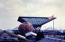 - Canadian Pavilion - The distinctive building in the form of a large inverted pyramid called the Katimavik, which is the Inuit word for "Gathering Place". The pavilion was located on a 30,285 sq metre lot and designed by Roderick Robbie, Colin Vaughan, Paul Schoeler and Matt Stankiewicz, with consulting architects Evans St. Gelais and Arthur Erickson. The major attractions in the building included a rotating cinema.