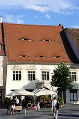 The Eyes of Sibiu (German: Augen von Hermannstadt, Romanian: Ochii din Sibiu) are the iconic eyebrow dormers on the roofs of Sibiu's houses. Sibiu lies in Transylvania, a historical region of Romania. The eyes, which are a symbol and a tourist attraction of the city, have given Sibiu the nicknames of The City with Eyes,[1] The City Where Houses Don't Sleep[2] and the portmanteau Seebiu.[3] They vary in shape – most of them are trapezoid-shaped, others having rounded or elongated forms.