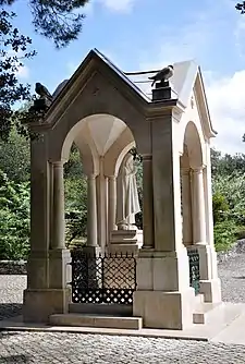 The chapel has since been enclosed within a large basilica and sanctuary, part of a complex including a hotel and other facilities.[7][5] In 1930, the statue of Our Lady in the Chapel of Apparitions was crowned by the Vatican.