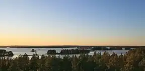 Färnebofjärden National Park (Swedish: Färnebofjärdens nationalpark) is a Swedish national park traversed by the river Dalälven, about 140 km (87 mi) north of Stockholm. It covers 10,100 ha (25,000 acres), of which 4,110 ha (10,200 acres) aquatic, on the frontier between the counties of Dalarna and Gävleborg.