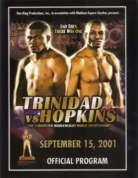Félix Trinidad vs. Bernard Hopkins, billed as And Then There Was One, was a boxing match that took place on September 29, 2001, at Madison Square Garden in New York City, between WBC and IBF middleweight champion Bernard Hopkins and WBA middleweight champion Félix Trinidad to unify all three titles and decide the first undisputed middleweight champion since Marvin Hagler. The winner would also become The Ring middleweight champion. The undercard featured championship fights in three other weight classes.