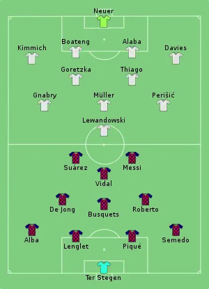 3. 1 2 "Full Time Summary Quarter-finals – Barcelona v Bayern Munich" (PDF). UEFA.com. 14 August 2020. Retrieved 14 August 2020.