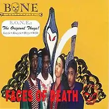 Faces of Death is the debut studio album by American Hip Hop group B.O.N.E. Enterpri$e. The album was originally released in 1993 on Stoney Burke, the independent label of Kermit Henderson, a record store owner in Cleveland who helped the band to record the album.[2] A verse from the first 1991 local radio single, titled "Flow Motion", was performed over the phone by member, Krayzie Bone, leading to 4 of the 5 members meeting up with Eazy-E and getting them signed to Ruthless Records. A digitally remastered version was released in 1995 after the band had signed with Eazy-E and changed their name to Bone Thugs-n-Harmony.