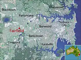 Fairfield is a suburb of Western Sydney, in the state of New South Wales, Australia. Being in the centre of the Cumberland Plain, Fairfield is located 30 kilometres (19 mi) west of the Sydney central business district and is the administrative heart of the Fairfield City Council (local government area) – despite a very small portion of it belonging to the Cumberland Council. Fairfield supports a mixture of commercial and residential developments, mostly characterised by medium-density buildings and some new high-rise apartments.