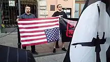 On July 4, 2015, Falanga officially established cooperation with the Czech National Democracy, whose representatives took part in a joint conference on the issues of Central Europe and then in an anti-American protest at the US consulate in Krakow.[18]