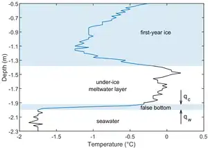 False bottom is a form of sea ice that forms at the interface between meltwater and seawater via the process of double-diffusive convection of heat and salt.[2]