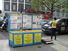 Supporters and practitioners of Falun Gong have established a number of research and advocacy organizations involved in reporting on human rights abuses in China and presenting this information to Western governments, NGOs, and multilateral organizations. These include the Falun Dafa Information Center, a volunteer-run organization which presents itself as the "official source on Falun Gong and the human rights crisis in China," and functions largely as a press office, publishing press releases and annual reports.[61] The Falun Gong Human Rights Working Group conducts similar research and issues reports on the persecution in China, often presenting these findings to the United Nations.[62] The World Organization to Investigate the Persecution of Falun Gong (WOIPFG) is as a research organization dedicated to investigating "the criminal conduct of all institutions, organizations, and individuals involved in the persecution of Falun Gong."[63] Falun Gong supporters and sympathizers have also founded groups such as Friends of Falun Gong and the committee to Investigate the Persecution of Falun Gong(CIPFG).[64]
