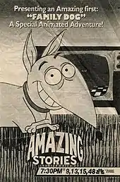 Family Dog is an adult animated series and sitcom created by Brad Bird for CBS. It is based on a 1987 episode of Amazing Stories. It originally aired for one season from June 23 to July 28, 1993. It was about an average suburban family, the Binsfords, as told through the eyes of their dog named Jonah.[1][2] The series was the first collaboration between executive producers Steven Spielberg and Tim Burton.