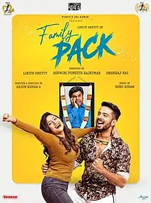 Family Pack is a 2022 Indian Kannada language comedy film directed by Arjun Kumar S.,[1] who previously directed Sankashta Kara Ganapathi.[2] The film stars Likith Shetty, Amrutha Iyengar, Rangayana Raghu, and Achyuth Kumar. The film follows two families and a human-like ghost played by Rangayana Raghu.[3] The film premiered on Amazon Prime Video.[4]