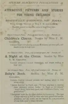 Advert for F.M.Gallaher's books for children in 1889[1]