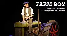 Farm Boy is a children's novel by Michael Morpurgo, best known as being the sequel to the popular novel War Horse. The book was first published in the United Kingdom in 1997 by Pavilion Books Limited and is illustrated by Michael Foreman. It was not initially planned for Morpurgo to write a sequel to War Horse, but the story was inspired after receiving many enquiries about what happens to Joey, a horse in service of the Army (the main character from War Horse) after the Great War.[1] In an article in ChronicleLive Michael Morpurgo also stated that his favourite of his own works was Farm Boy.[2] The book captures modern life on a farm in rural Devon, where Michael Morpurgo lives,[3] while having retrospective flashbacks to the lives of Albert and Joey (characters from War Horse). He stated in the article in ChronicleLive: