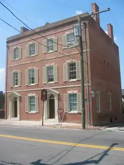 The three-story building, built in the Federal style, was a frequent meeting place for the community.[3] The first floor held the banking area, including the vault, while the third floor was home to the bank manager and his family.[4] The bank maintained operations through the American Civil War and closed by order of the Virginia General Assembly in 1866.[5]