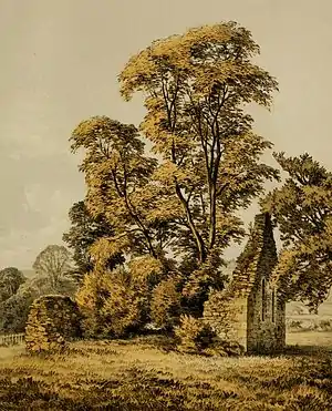 Fraser stated in 1869, that no buildings or any part of the castle was then visible. He stated that the only remaining trace of the castle was a green mound, which overlooked the junction of two deep glens, between two small rivulets of which the banks were steep.[3] William Charles Maughan stated that the site of the castle could be distinguished, at the time of his writing, "by a small mound near the murmuring burn which flows into the bay".[8] Maughan also wrote that at Faslane there stood an oak tree at place called in Scottish Gaelic Cnoch-na-Cullah (English: "knoll of the cock"); and that according to legend, when a cock crowed beneath the branches of the old oak upon the knoll, a member of Clan MacAulay was about to die.[9][note 1]