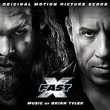 Fast X: Original Motion Picture Score is the film score album, featuring the original music composed by Brian Tyler, who called it as his "most complex" score in the franchise.[27] As he described the antagonist Dante Reyes (Jason Momoa) as "relatable" and "charming",[28] for his theme, he used high strings such as the harp, and bass music with modern instruments as "it gives you this feeling that you can’t look away. There’s a sense [in his music] of empathizing with him, and why he becomes this villain."[29] He also used an odd chord, describing it as "every time it happens and cycles around, that chord goes inside your brain to understand where the music is supposed to go. It’s like a dopamine hit, that’s different and reminds you there’s something off about him."[29] The score was released by Back Lot Music on June 2, 2023.[30]