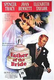 Father of the Bride is a 1950 American comedy film about a man trying to cope with preparations for his daughter's wedding[4] starring Spencer Tracy, Joan Bennett, and Elizabeth Taylor. Directed by Vincente Minnelli,[5] it was adapted by Frances Goodrich and Albert Hackett from the 1949 novel by Edward Streeter. Father of the Bride was nominated for Academy Awards for Best Picture, Best Writing, Screenplay, and Best Actor in a Leading Role.