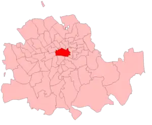 ![]() A map of parliamentary constituencies within the County of London at the time of the by-election, with City of London highlighted in red. | ||||||||||||||||