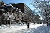 In Pittsburgh, both the impact and severity of the storm caught many by surprise. Snow began falling in earnest late Friday morning. The sudden onset of the storm forced many local school districts, especially districts south of the city, to close early due to rapidly deteriorating road conditions; this is an extremely uncommon event for schools in southwestern Pennsylvania.[45] Nearly all schools, including the Pittsburgh Public Schools, cancelled classes the following week. Most local universities were also forced to cancel classes for much of the following week due to the storm's effects. Additionally, over 130,000 people in the Pittsburgh area were without power as a result of the heavy, wet snow.[46] For many residents, power was not restored until Monday, February 15.