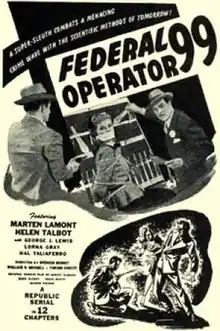Federal Operator 99 is a 1945 Republic film serial. It was later edited down into a feature version titled F.B.I. 99 for television. The serial is about an FBI agent named Jerry Blake who battles gentleman thief Jim Belmont, who escapes custody with help of his gang and begins a wave of crimes, beginning with plotting to steal the crown jewels of the Princess Cornelia.