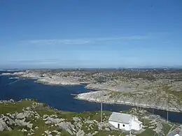 Fedje is the largest island in Fedje Municipality in Vestland county, Norway. The 7.2-square-kilometre (2.8 sq mi) island is home to almost all of the municipality's residents. The island sits west of the Fedjefjorden, south of the mouth of the Fensfjorden, and north of the islands of Øygarden. The North Sea lies to the west of the island. The main population center on the island is the village of Fedje on the northern coast of the island. The southern coast of the island is the site of the other village on the island, Stormark. The 47-metre (154 ft) tall Fedjebjørnen is the highest point on the mountain. Hellisøy Lighthouse lies just off the southwestern coast of the island.[1]