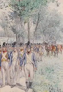 Myrbach visited America on a state-funded study trip in 1904, part of which was to represent the Applied Arts School at the 1904 World's Fair in St Louis;[17] from California, he submitted his resignation to the school due to ill health.[1][18] He moved abroad in 1905, first returning to Paris and providing illustrations for Hachette, and then from 1914 living in Spain, mainly in Barcelona but also spent time in Bilbao. He returned to Austria in 1936.[19]