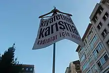 In March 2018, Turkish police launched the "Women Emergency Assistance Notification System" (KADES) app for women to report cases of domestic violence and seek assistance faster.[28] In November 2018, the Turkish Interior Minister Süleyman Soylu said that the app has been downloaded by over 353,000 people.[29] The murders of women in Turkey increased from 66 in 2002 to 953 in the first seven months of 2009.[30] In the Eastern and Southeastern Anatolia regions in particular, women face domestic violence, forced marriages, and honor killings.[31] Şefkat-Der, a Turkish non-governmental organization, has suggested granting licensed, tax-free guns to women as a way to combat domestic violence.[32] On 8 March 2017, a mob illegally entered the Istanbul Bilgi University campus and attacked students celebrating International Women’s Day,[33] also, students mentioned that they had been threatened on Twitter before the incident.[34] Between 2002 and 2009, the murder rate of women skyrocketed by 1,400 percent.[35] On 2010, the Turkish anti-violence group Mor Cati created a video attempted to raise awareness of violence toward women in a public way. The group placed large posters of women jumping for joy, their arms and legs splayed out beyond the frame's borders, all around Istanbul. The text next to the women reads, "I want to live in freedom." The organization then set up hidden video cameras, which purport to show male passersby kicking and ripping off the cutouts' arms and legs.[36][37] On 2013 about 28,000 women were assaulted, according to official figures. Of those, more than 214 were murdered, monitors say, normally by husbands or lovers.[35]