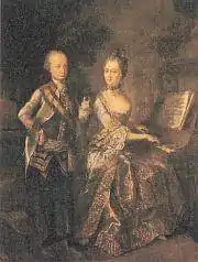 1. Genealogie ascendante jusqu'au quatrieme degre inclusivement de tous les Rois et Princes de maisons souveraines de l'Europe actuellement vivans [Genealogy up to the fourth degree inclusive of all the Kings and Princes of sovereign houses of Europe currently living] (in French). Bourdeaux: Frederic Guillaume Birnstiel. 1768. p. 1.