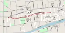 Until 1928, the street was named Ferhadija, after Ferhad-bey Vuković-Desisalić, who in 1561/62 built a mosque in that street. From 1928 to 1941, when it was connected with Sarači,[2] it was named after Prince and later King Peter II Karadjordjevic. From 1941 to 1945, street returned the old name Ferhadija, and from 1945 to 1993, her name was named after Vaso Miskin Crni, national hero of Yugoslavia. Since 1993, old name has been restored.[3]