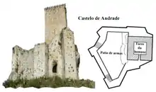 Fernán Pérez de Andrade or Fernán Peres d'Andrade (? – 1397) was a Galician knight. His birthdate is unknown but is presumably before 1330. His death date fell between July 28 and August 21, 1397.[nb 1] The fourth son of Ruy Freyre de Andrade and Inés Rodriguez de Sotomayor, he belonged to a family associated with the knights of the Orden de la Banda (Order of the Sash) since its founding by Alfonso XI of Castile in 1332. He was married to Sancha Rodríguez,[nb 2] daughter of Aras Pardo and Tareyga Affonso, and with whom he was known to have had two daughters, Maria and Inés Fernández, nuns of the Order of Saint Clare, and a son (whose name is unconfirmed, though some sources mention Nuño) who died at an early age, leaving the family without a direct male heir.[nb 3]