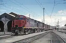 ![]() An N de M passenger train at Mexico City in the 1960s, the Torre Insignia in the background | |