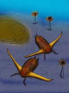 - ↑ Ortega-Hernández, Javier; Van Roy, Peter; Lerosey-Aubril, Rudy (May 2016). "A new aglaspidid euarthropod with a six-segmented trunk from the Lower Ordovician Fezouata Konservat-Lagerstätte, Morocco". Geological Magazine. 153 (3): 524–536. Bibcode:2016GeoM..153..524O. doi:10.1017/S0016756815000710. ISSN 0016-7568. S2CID 130254788.