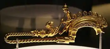 Visigothic eagle-shaped fibulae, 6th century, found at Tierra de Barros, Spain, made of sheet gold over bronze.[1] The Walters Art Museum.