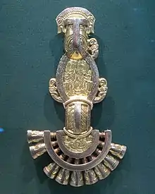 Lombardic gilded silver brooch from Tuscany, c.AD 600, one of the largest of its kind (British Museum)[2]