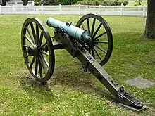 As with the corresponding heavy field guns, the heavier howitzers were available in limited quantities early in the war. Both Federal and Confederate contracts list examples of 24-pounders delivered during the war, and surviving examples exist of imported Austrian types of this caliber used by the Confederates. The M1841 24-pounder howitzers found use in the "reserve" batteries of the respective armies, but were gradually replaced over time with heavy rifled guns. The only known 24-pounders in use by the Army of Northern Virginia were in Woolfolk's Batteries (later Battalion) with two batteries of 4 pieces each. With the exception of the Far Western theatre of the war (e.g. Halls Battery at Valverde New Mexico), Federals did not use 24-pounder howitzers in field.[12] The 24- and 32-pounders were more widely used in fixed fortifications, but at least one of the later large weapons was with the 1st Connecticut Artillery as late as 1864.[13]