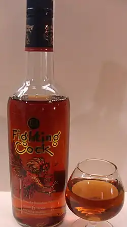 Fighting Cock is a brand of Kentucky straight bourbon whiskey produced in Bardstown, Kentucky by Heaven Hill Distilleries, Inc. It is sold in 16 oz (1 pint), 750ml, and 1-liter glass bottles.