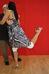Open legsDramatic final ending figure of tango with the follower's open legs.